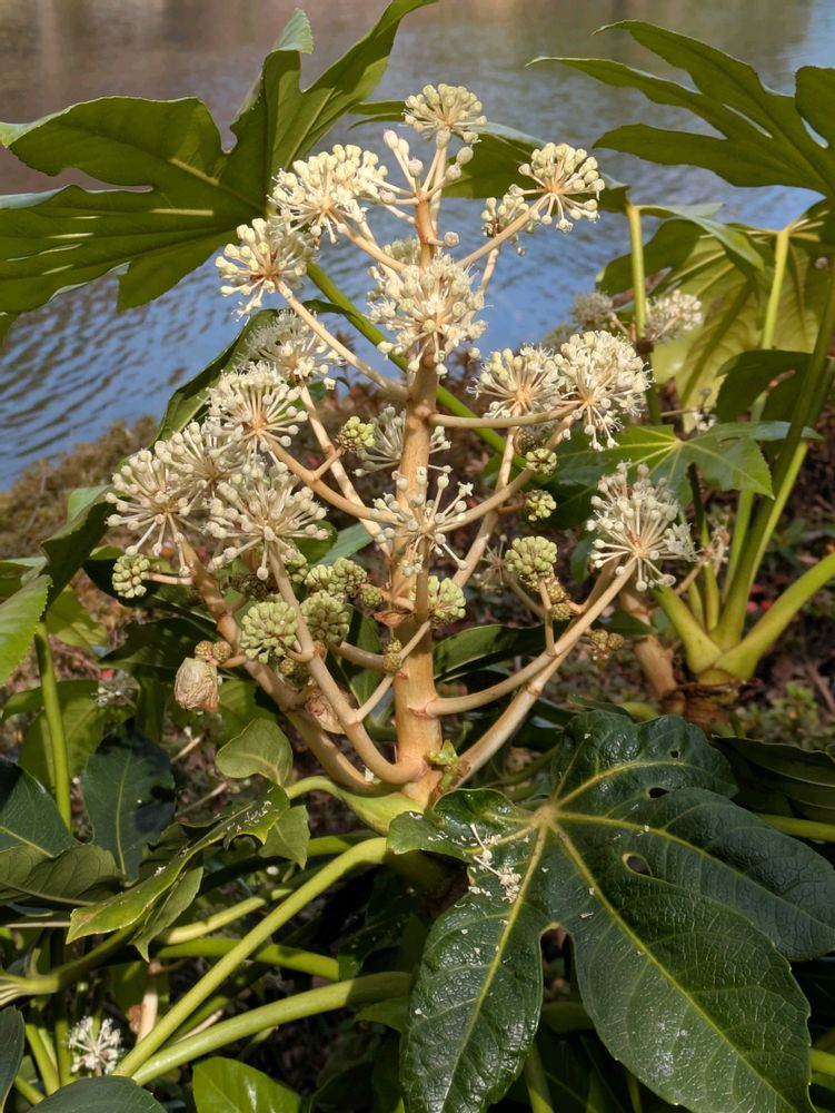 近くに、ヤツデの花が
