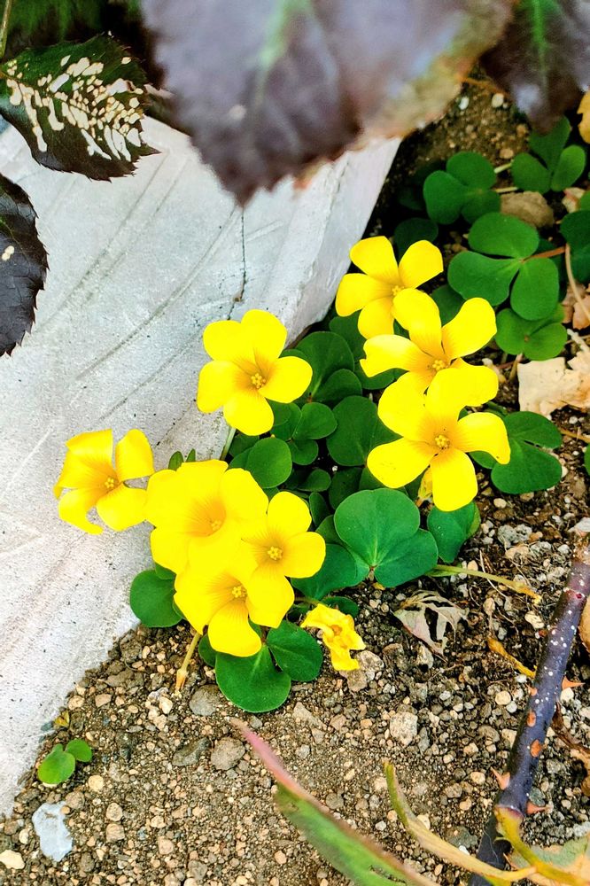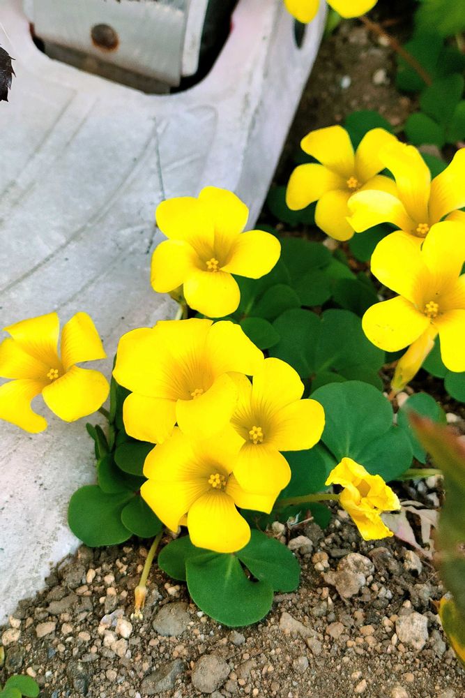 アパートの花壇に子供さんのスケボーとかボールが突っ込まれていて、窮屈そうにオキザリスが咲いていました🤣