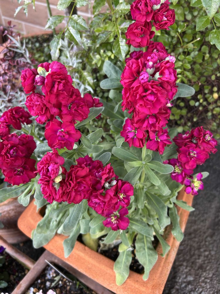 ストックだけの真っ赤な寄せ植えもいいですね😉🎶