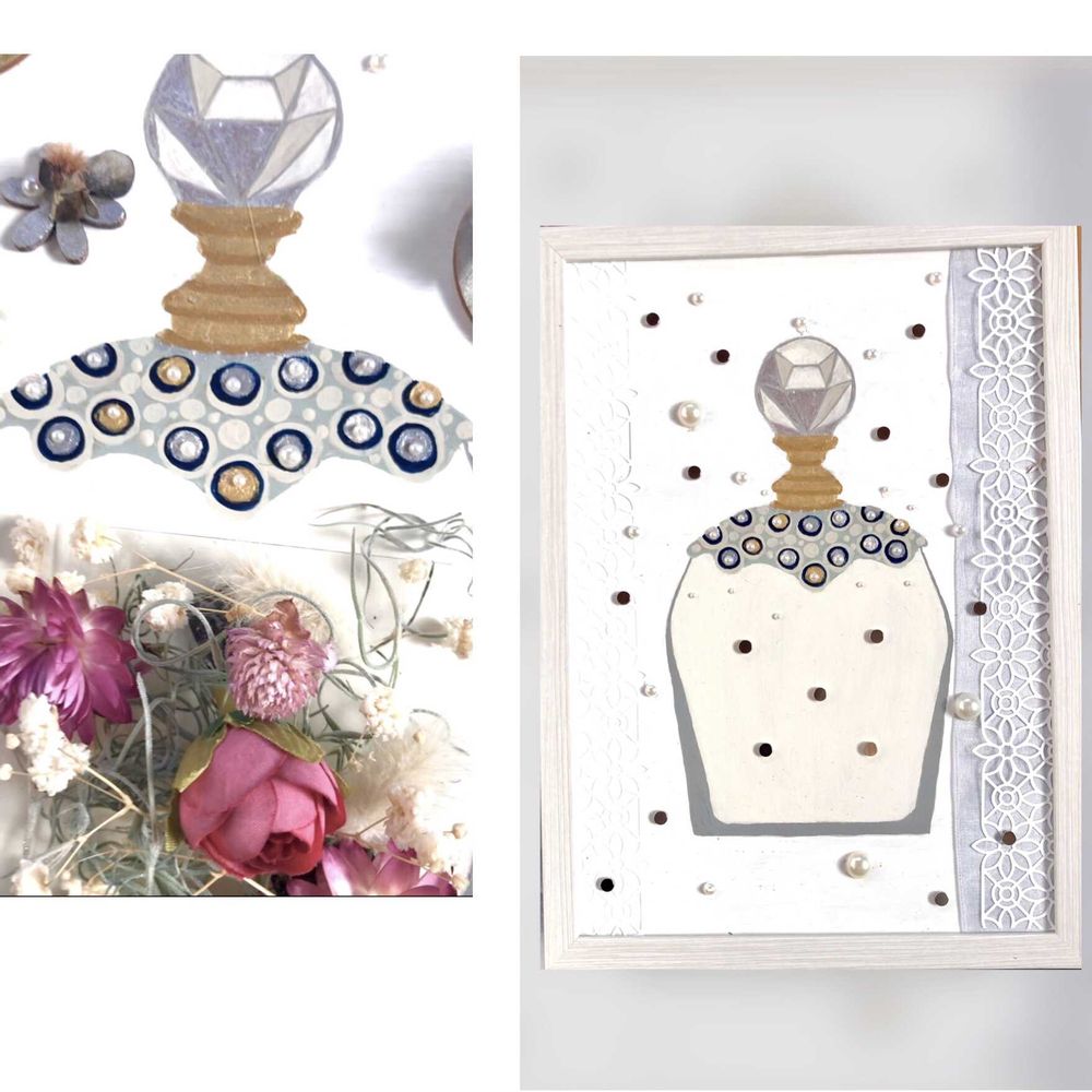 まずはトールペイントで香水瓶描いて頂いた作品💠💠(1枚目〜3枚目)