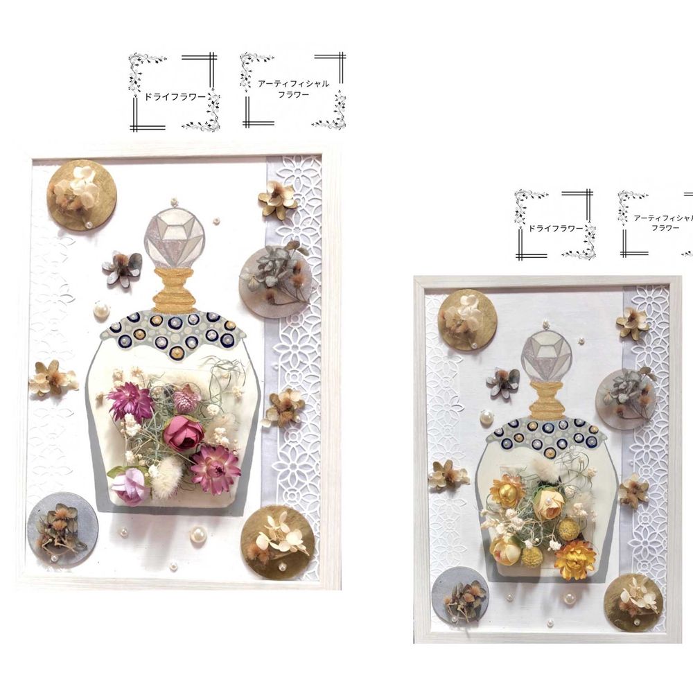香水瓶ということで透明感ある作品にしたくて、瓶の中のお花は浮いてるようにアクリル板使用