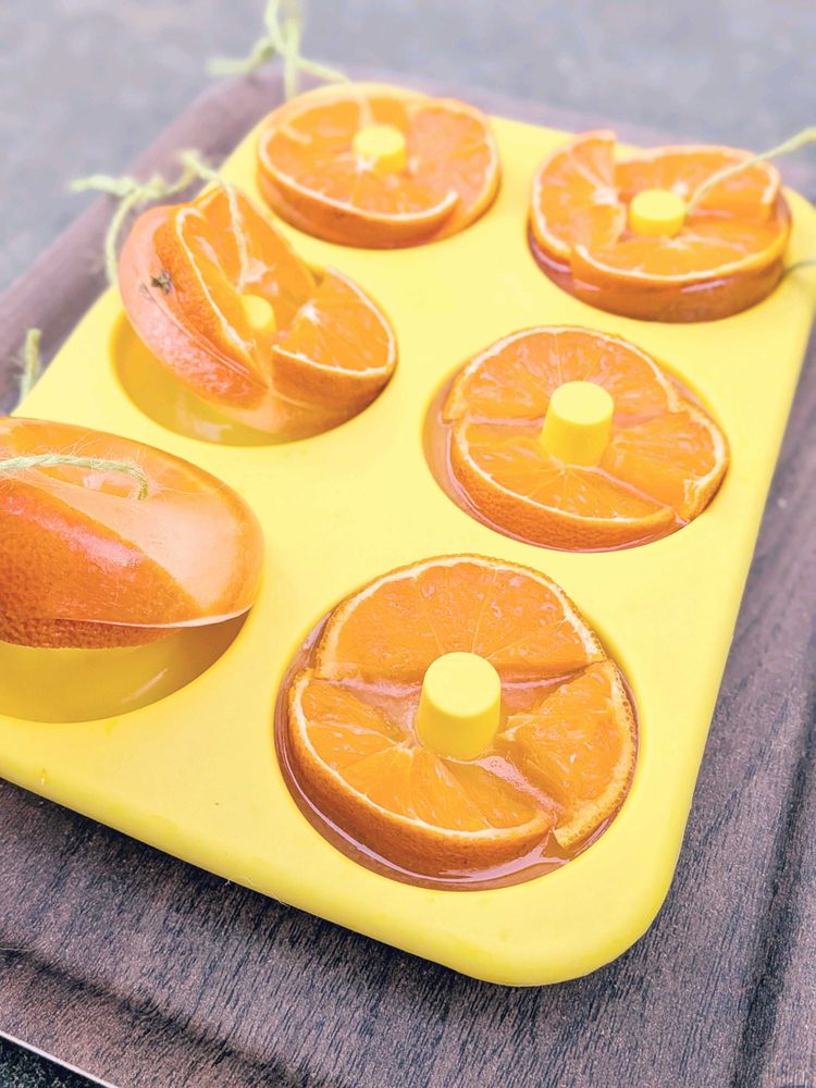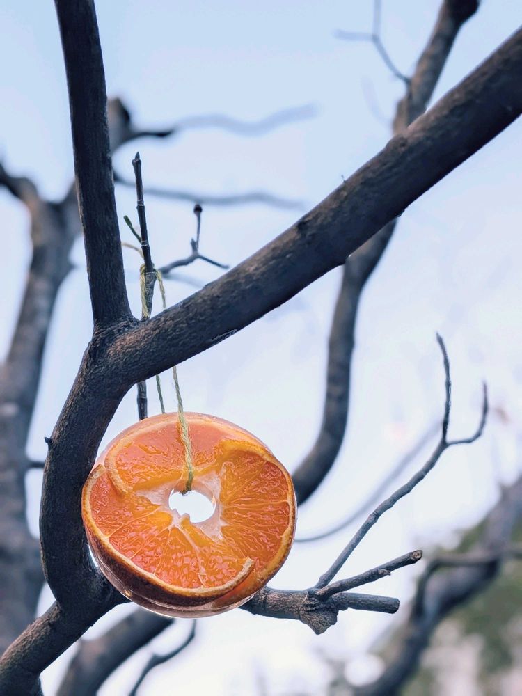昨夜ミカンと水をドーナツ型に入れてお外へ。しっかり凍っていました🙌