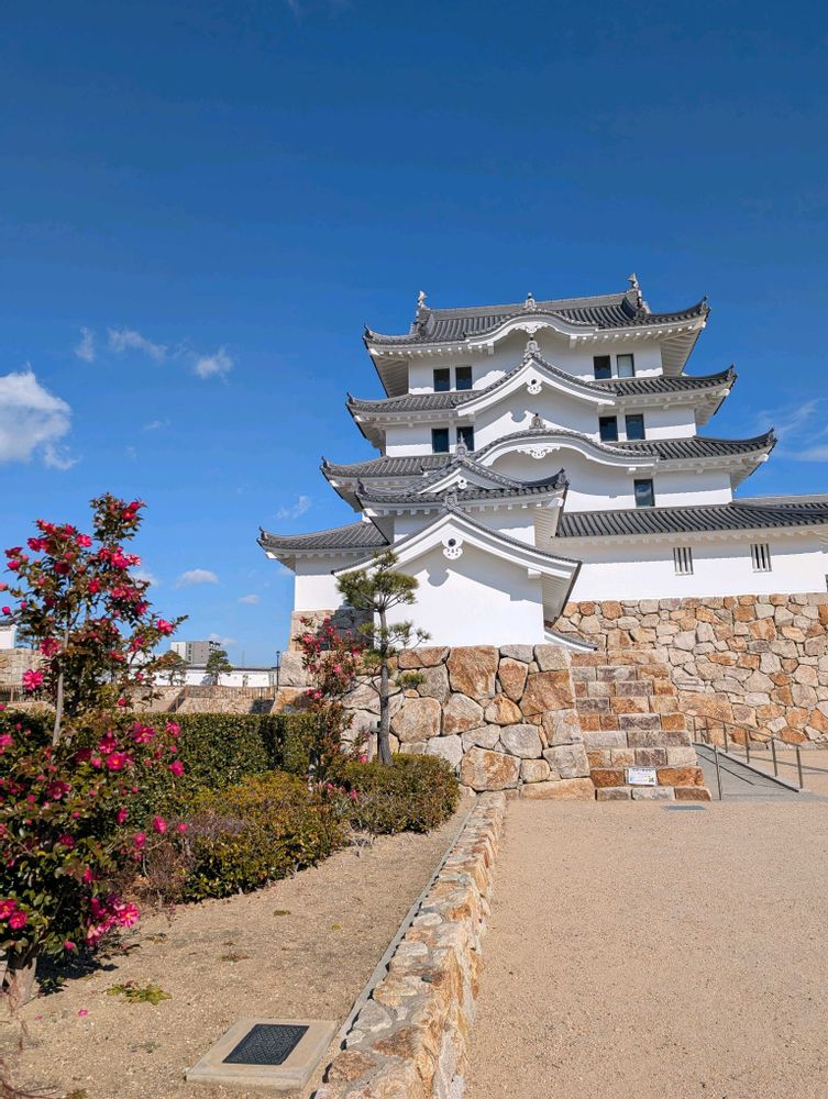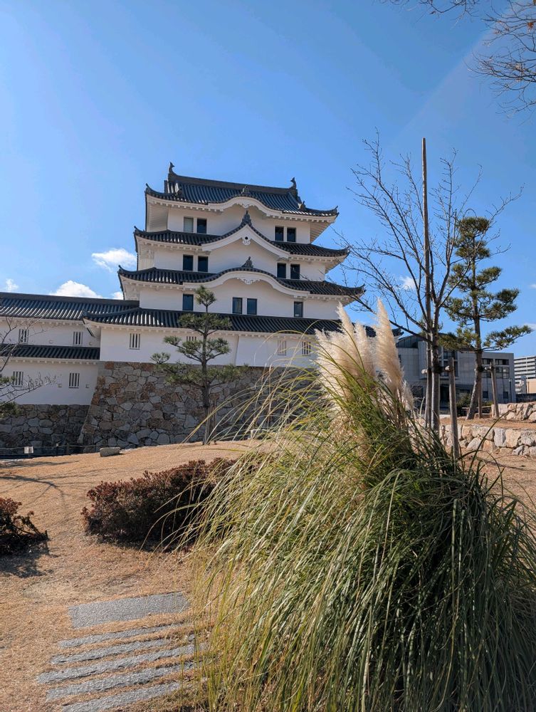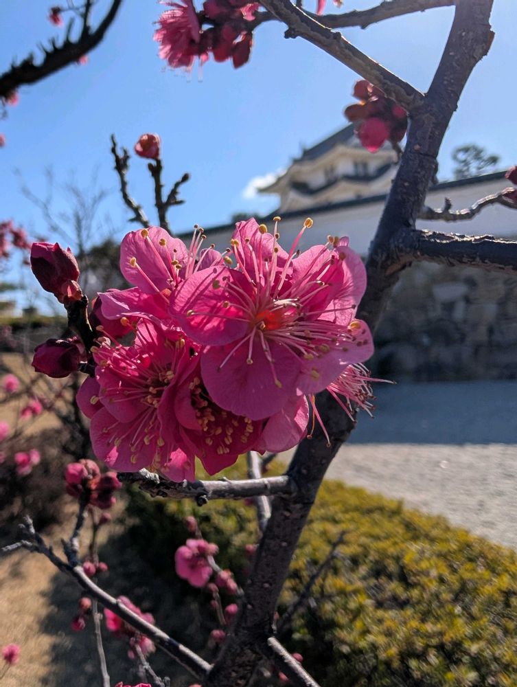 尼崎城です。①紅梅、②松、③パンパスグラス、④サザンカと🏯🏵️🌿✨