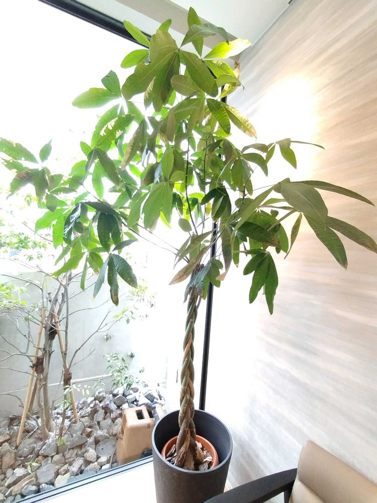 ①編み込みみたいなねじねじの茎がかわいらしいパキラ❇️❇️🏝️