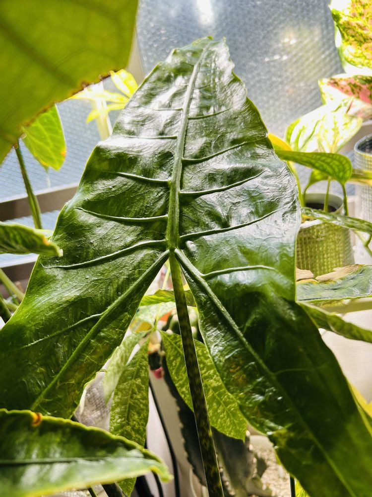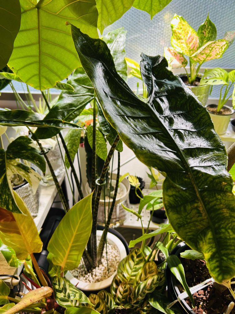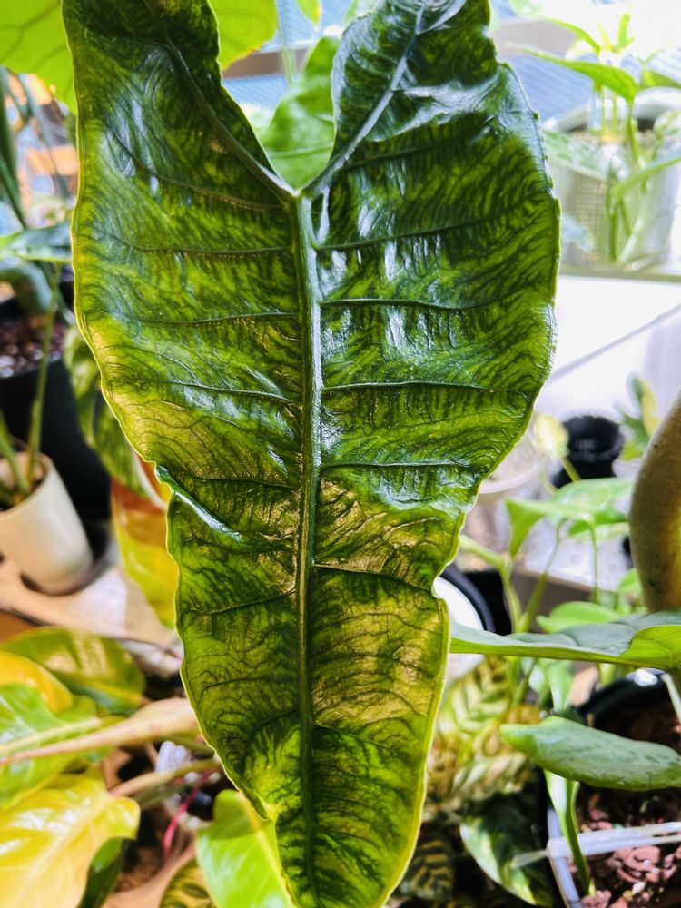 新芽が開きましたー😊アロカシアゼブリナアティキュラータ😊ジュラシックパーク感がすごーいです〜😊ジュラ期の恐竜のような迫力があります🦕🦖🦕🦖🦕🦖🦕🦖🌳インスタではジュラシックパークの曲を選曲しておきました😊