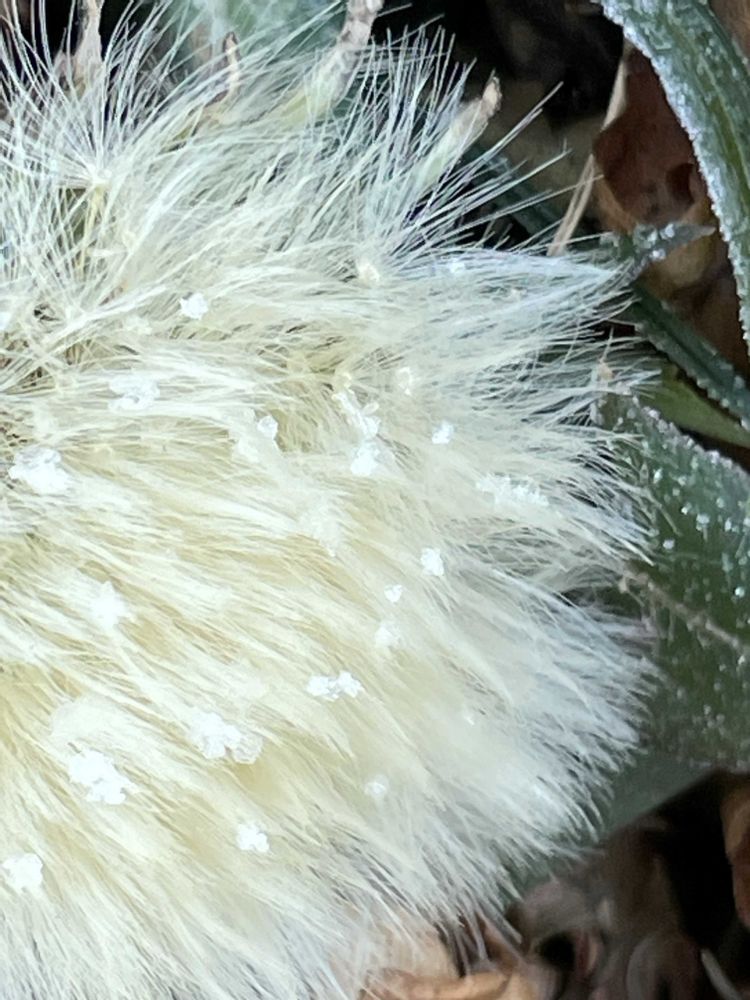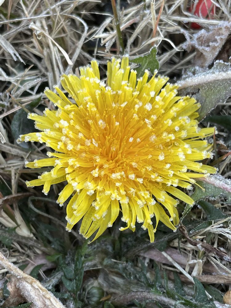 今朝、咲いていたタンポポ。わかりますか?小さな雪??(多分、霜だと思います)可愛いなって思っちゃいました☺️朝早くしか見れない