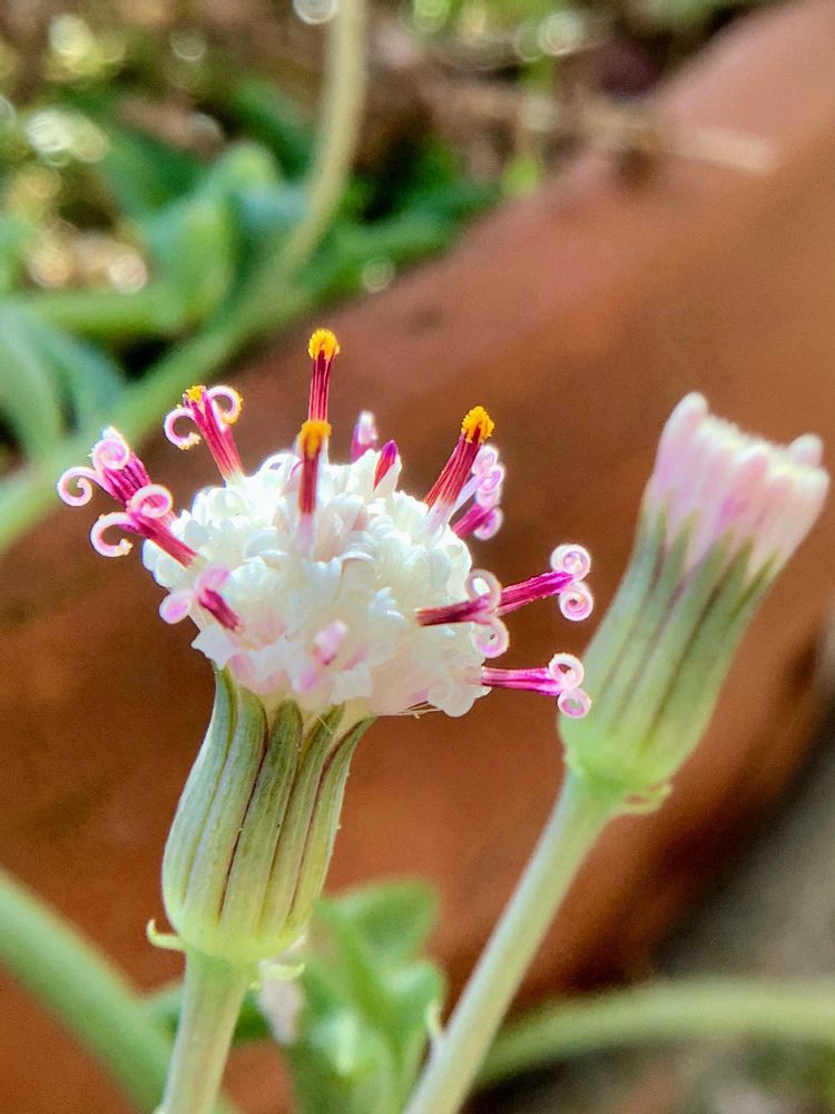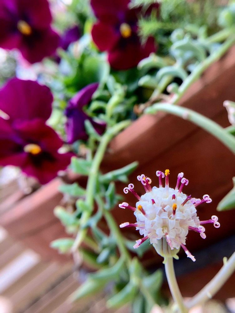 屋外の寄せ植え花鉢に植えっぱなしのドルフィンにお花が咲いてました