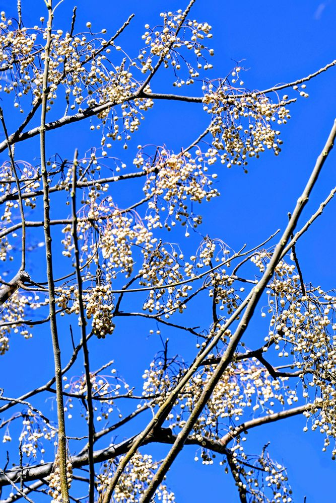 ③やけに鳥の啼き声がするなぁと見上げるとセンダンの実が沢山ぶら下がっていました。