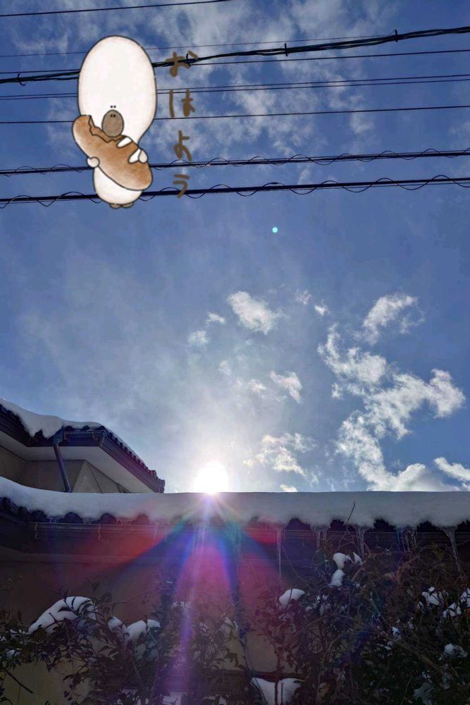 こちらもぼたん雪でも粉雪でも無い…表現出来ない…降ってます😓でも降ったり止んだり太陽☀️が顔を出したり…( ̄▽ ̄;)