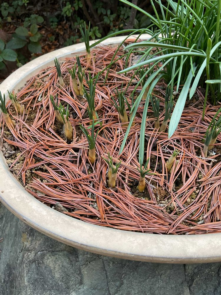 真ん中のフサフサが ムスカリさんで、その周りが クロッカス👍