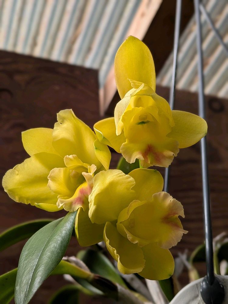 今日の花カトレア、我が家の花、釣り籠場にて、黄色、🙋
