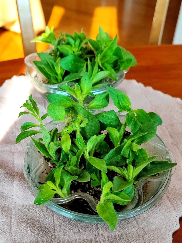 昨日切って水に浸けていたペチュニア、小さめの挿し穂を選んでセントポーリアの葉挿し用の土に挿しときました。土もカップも永遠に使い回しているやつです。