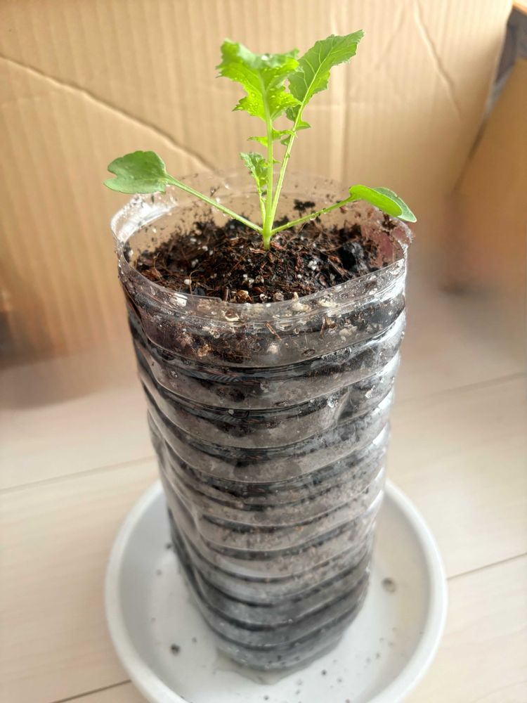 立派な大根になるのを夢見て今日も成長中😌茎だけひょろっと伸びてきて倒れてきそうだったので植え替え。