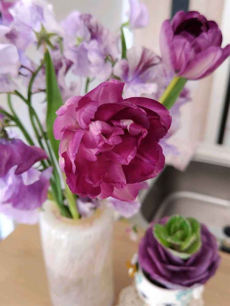 ➁昨日届いたチューリップとスイートピー