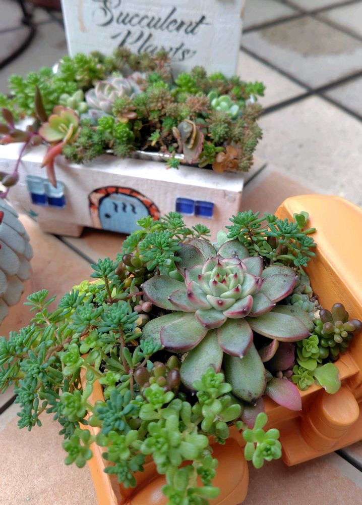 ⑤いつもは玄関前の多肉たち。北側なのであんまり大きくならないけど、元気です🤗。