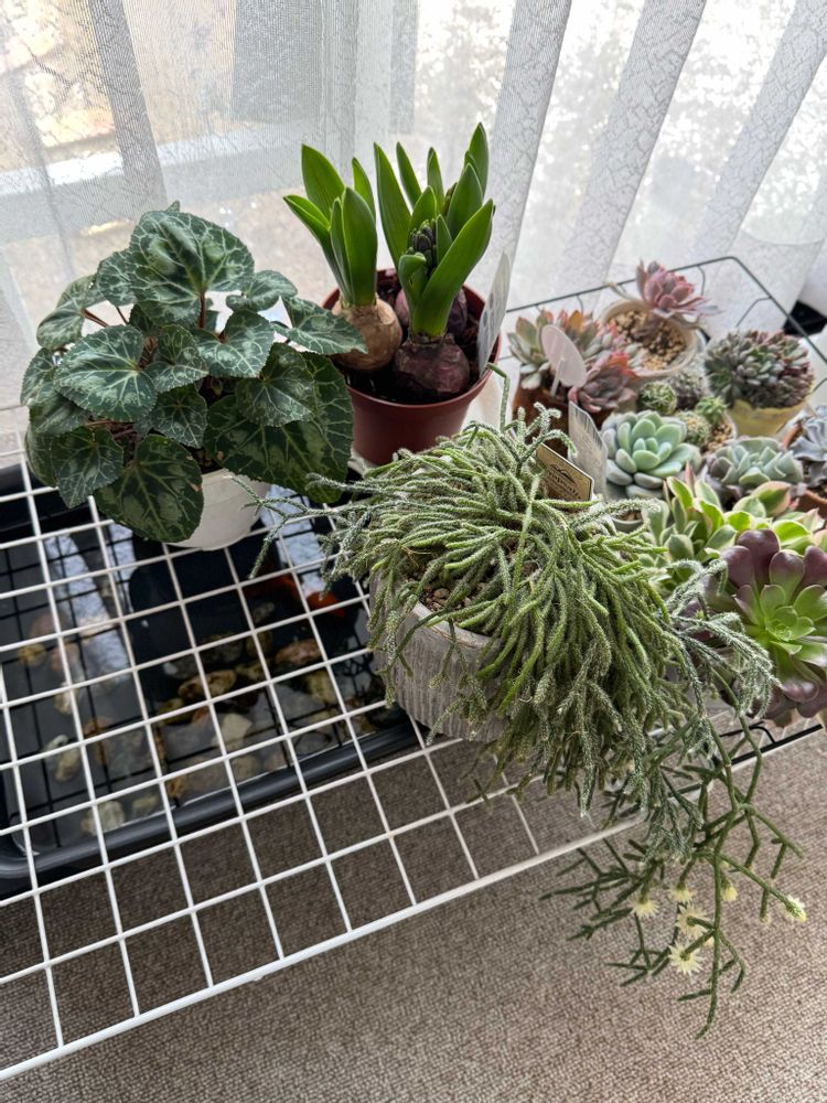 シクラメンもヒヤシンスもお花が楽しみね🎶金ちゃんの上に置いてるのかな〜ε( ε•o•)э 𓈒𓏸◌