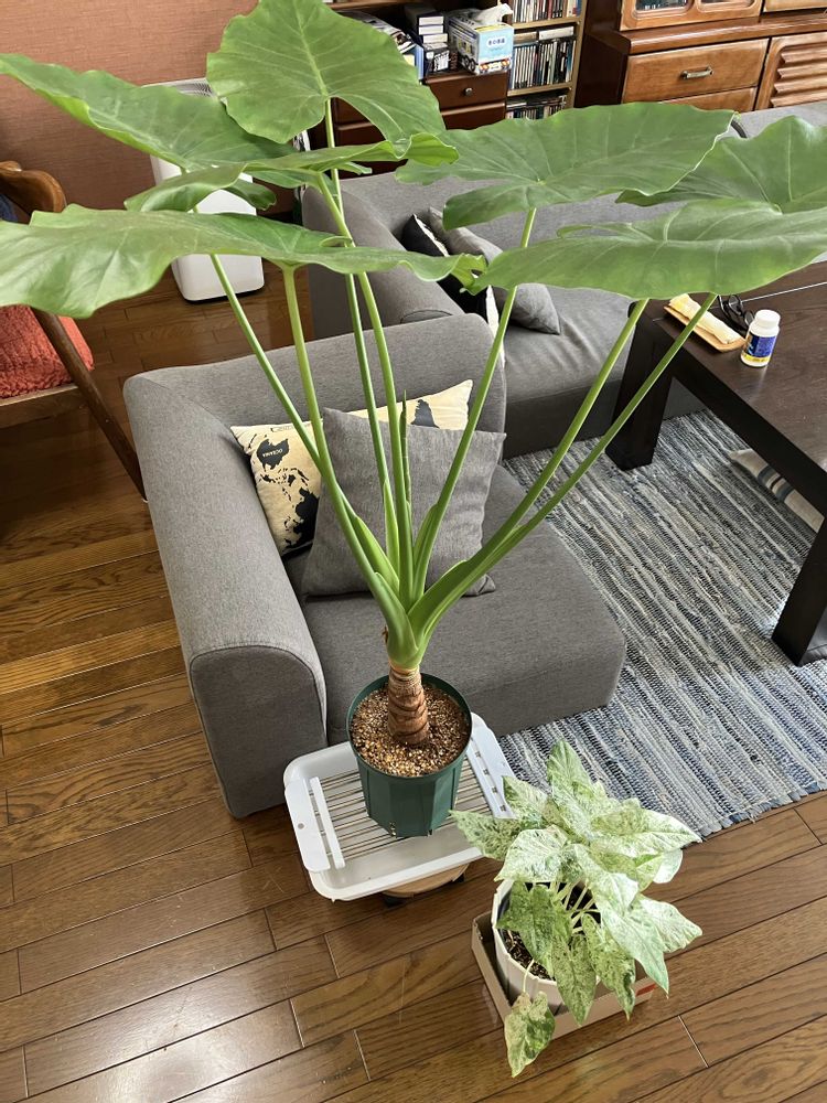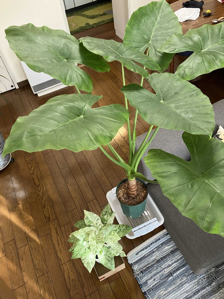 今日は先住のクワズイモさん水やり🚿せっかくなのでお迎えの斑入りと並べて大きさ比較😁斑入りも大きくなるもんなのかな?それともまた別物の感じなのかなぁ?