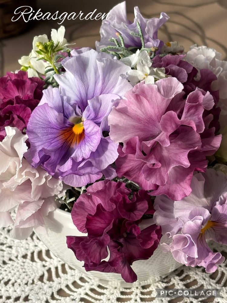 ④⑤もう1つパンジーのアレンジ。先日作った物が意外と長持ちしたので、また作ってみました。