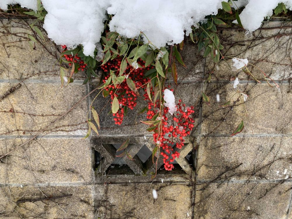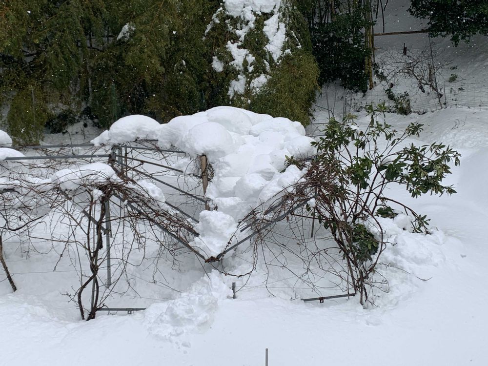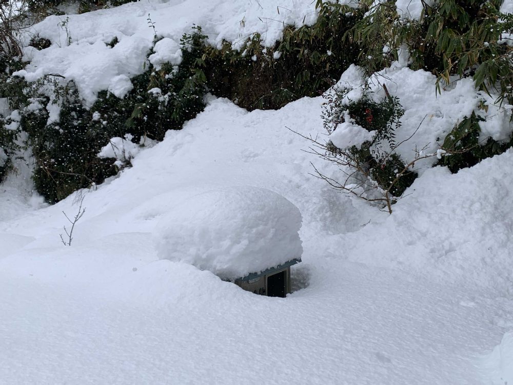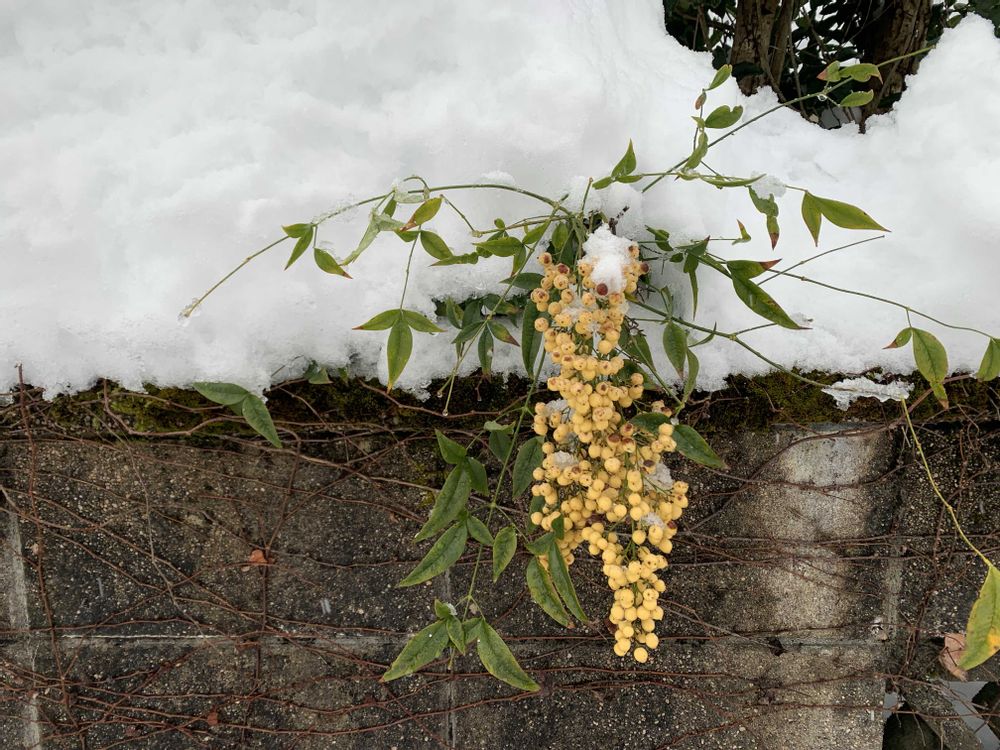 いやぁ積りました😅💦わが家には車を止められなくて、下界の空き地に止めてます💦そこの南天と白南天😀家の裏のサルナシの棚が潰れました😱カールくんの離れの犬小屋も埋まってます🤣😅💦