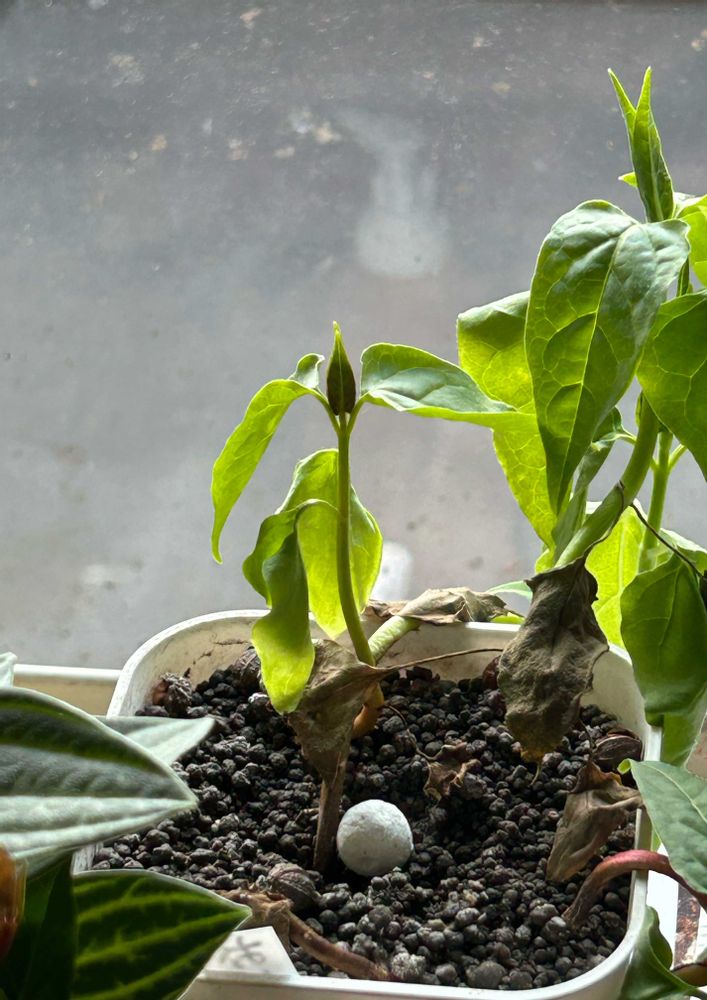 白粉花が随分大きくなったんだけどお外は寒いんですけど…やっと発芽したのになぁ〜