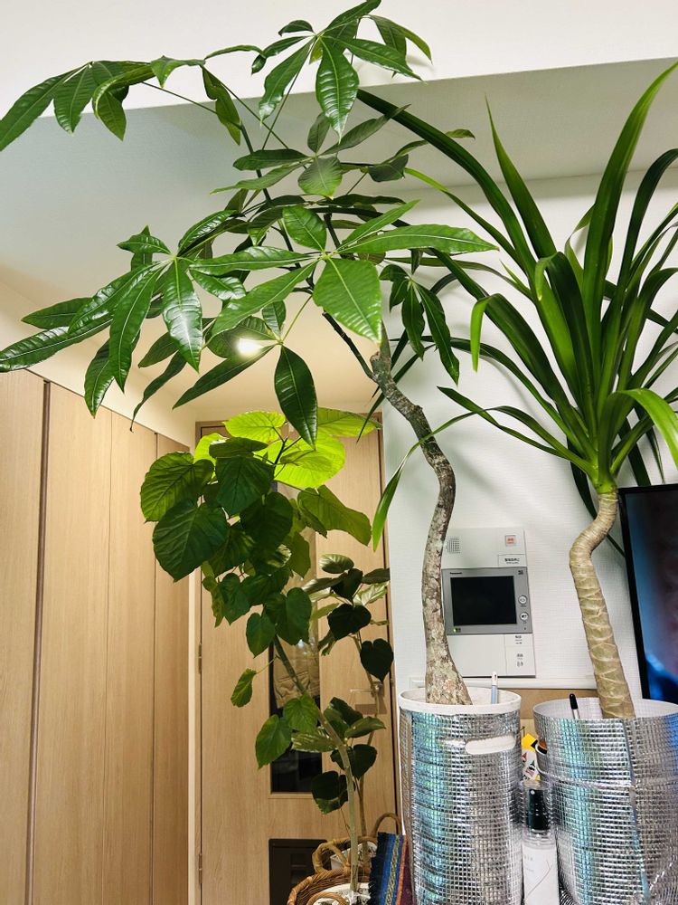 お気に入り😊大好きなパキラ😊ウンベラータ😊ドラセナパラオ🇵🇼ブラッサイア😊エバーフレッシュ😊見てるだけで癒されます😊