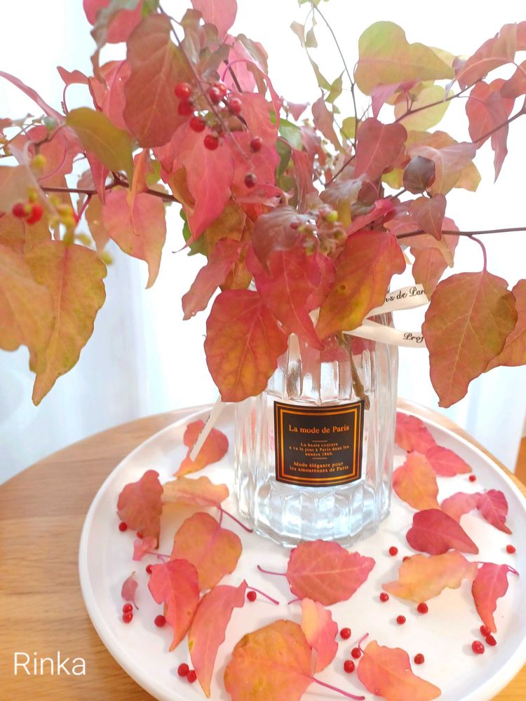 葉っぱの色づき具合が綺麗で飾ってみたよ😊💓💓