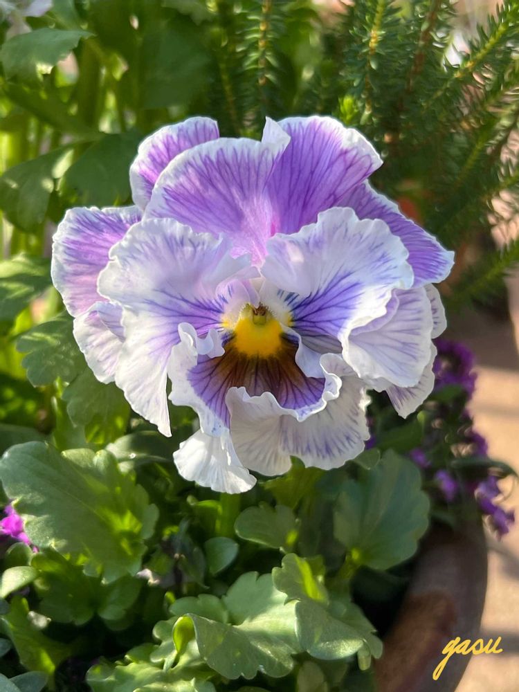 爽やかなマラコイデス、ふんわり大輪のパンジーにアリッサムを加えリーフは一切なし💦