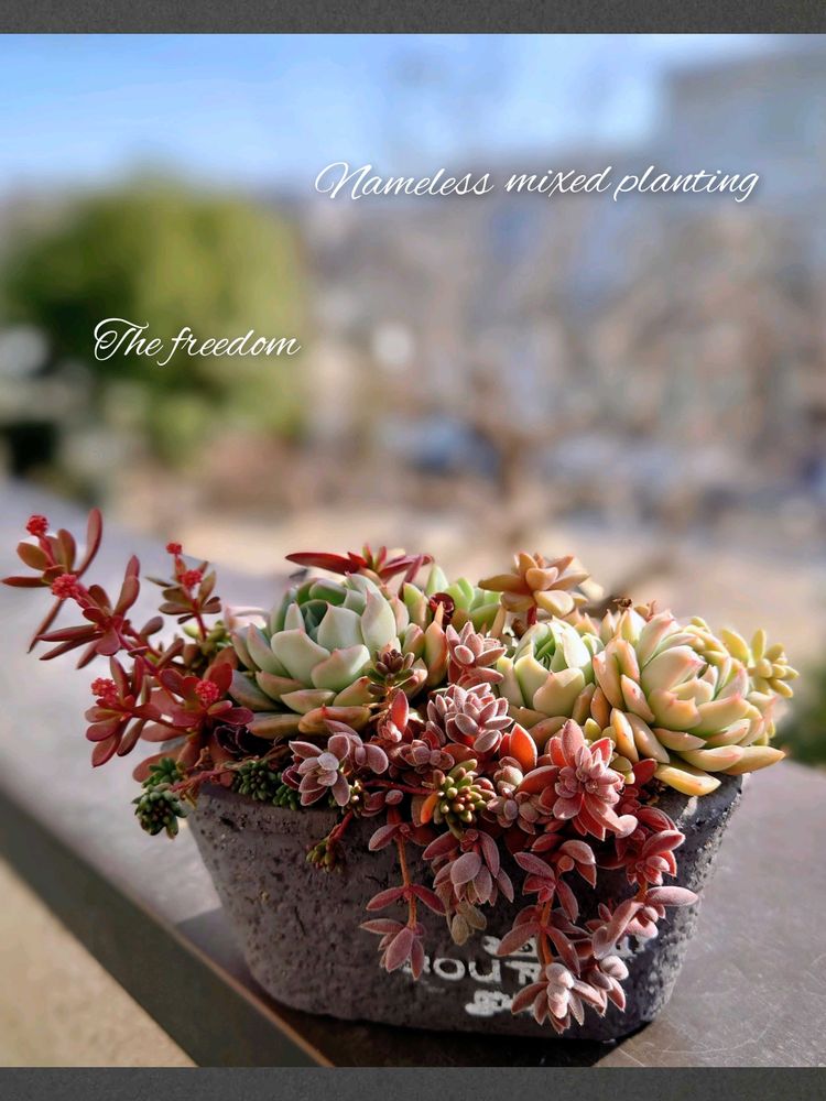 ①は以前投稿した際も言ったのだけど、本当は寄せ植えじゃなくて「寄せ植えに使いきれなかった余り物葉挿し詰め合わせ」