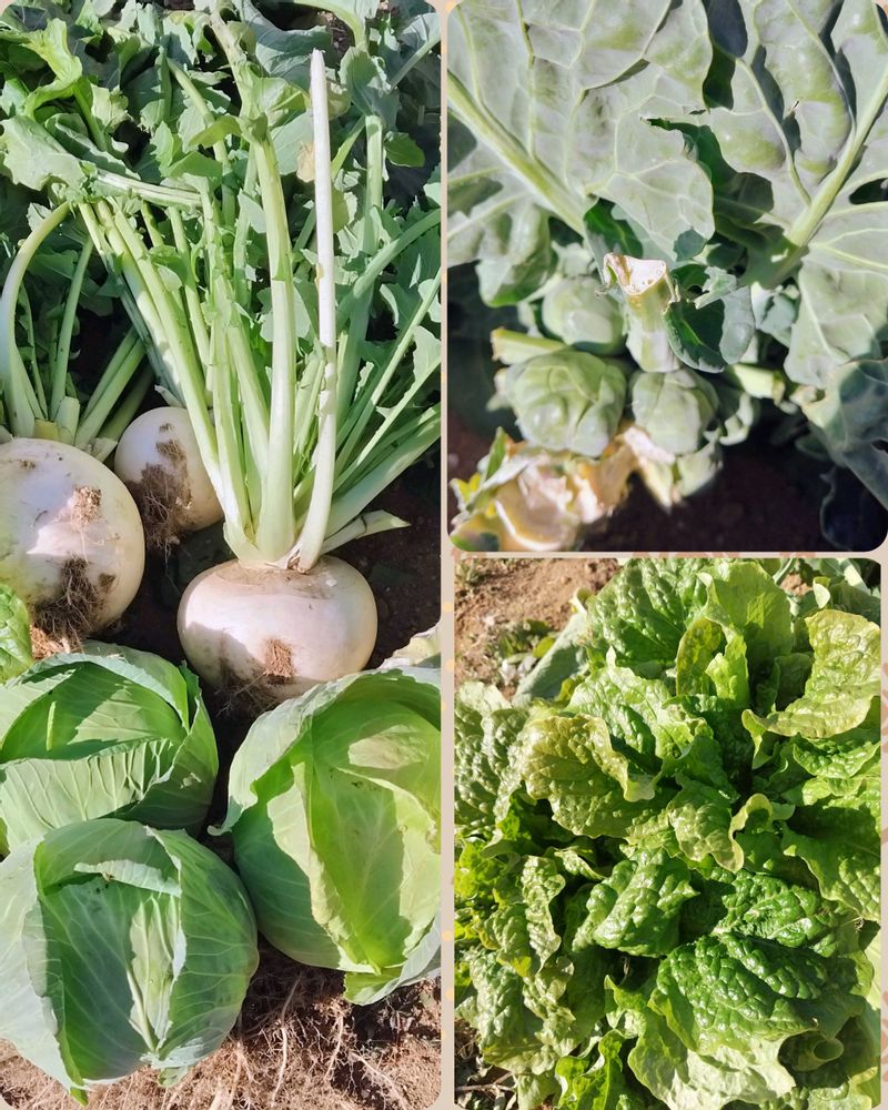 1️⃣2️⃣キャベツ、芽キャベツ、サンチュ、大大カブ(千枚漬けに)