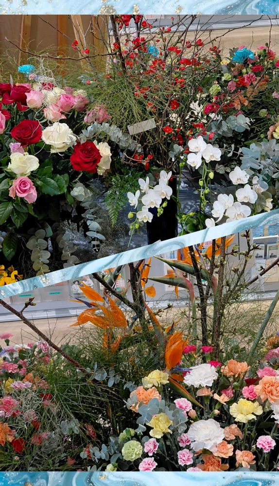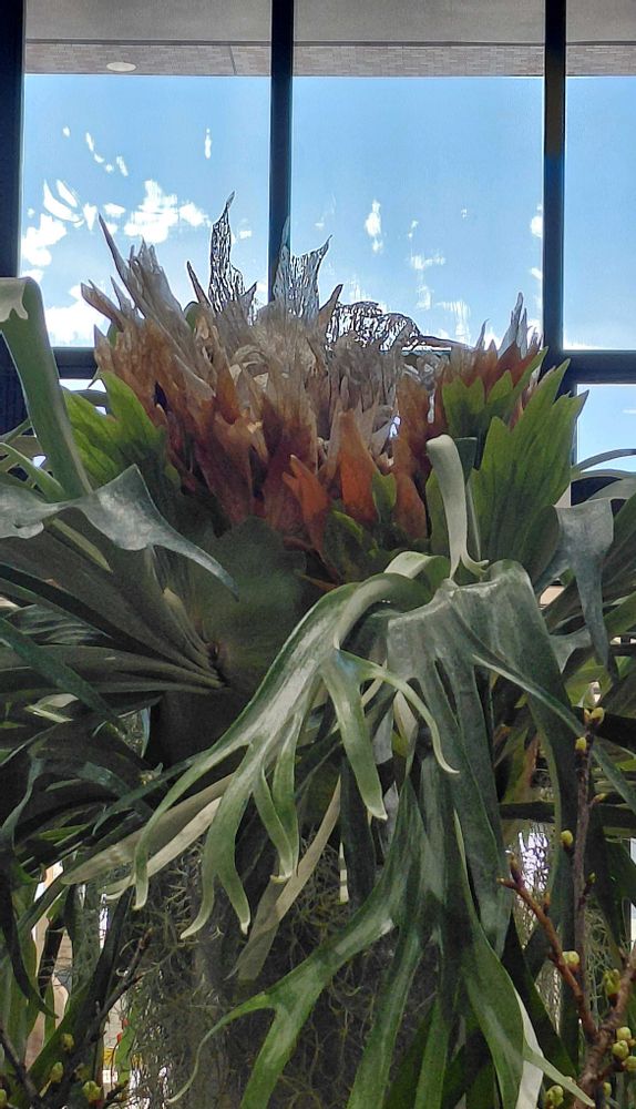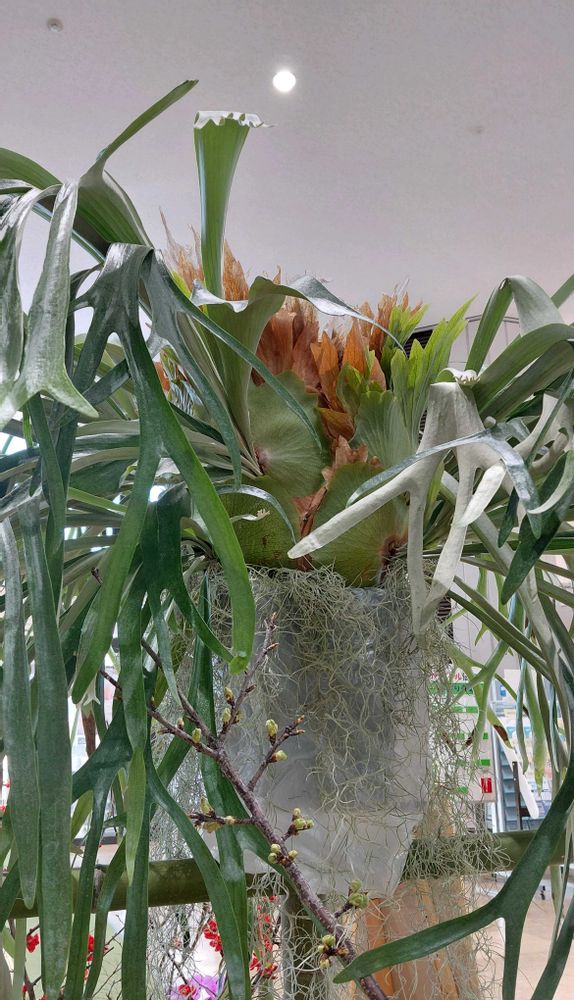 豪華でカラフルな花*花の中、ひときわ目立ったビカクシダには強さを感じました🌿