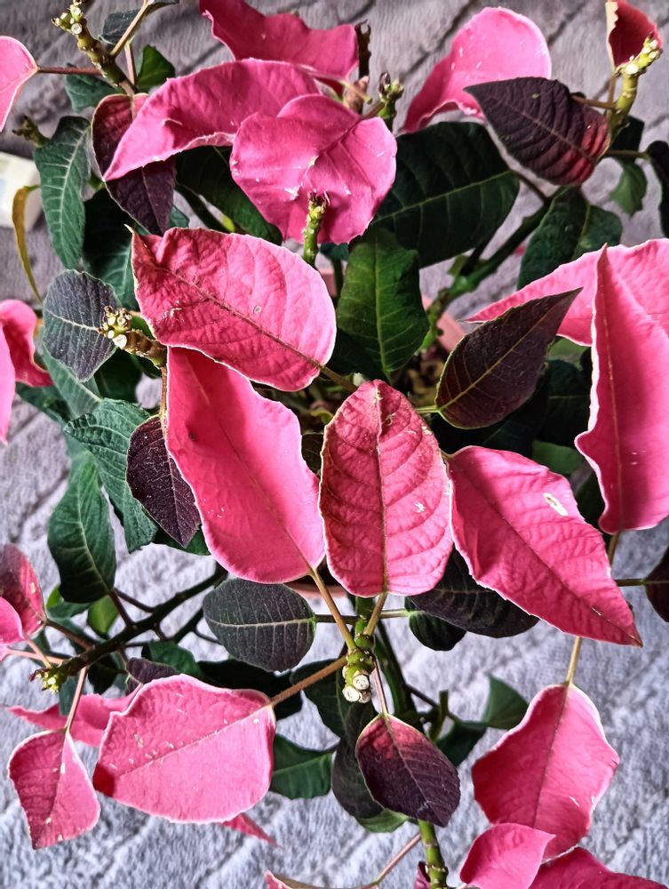 プリンセチア、うちもまだ咲いてます。ベランダに☺️