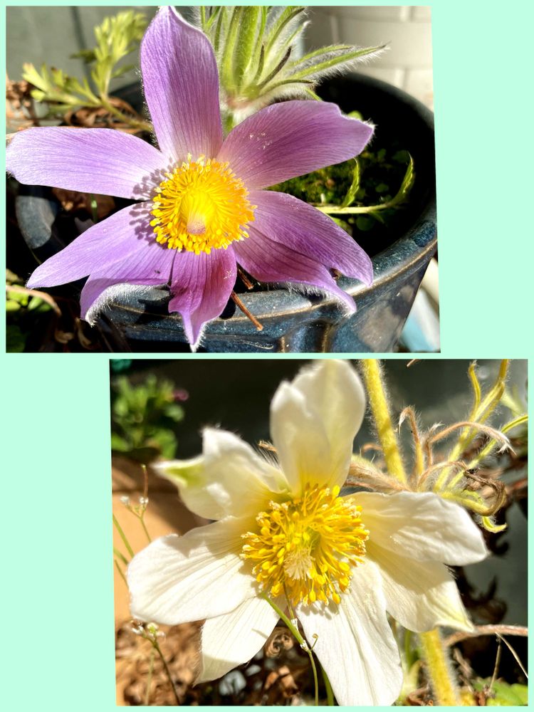 そんな中、1/18に投稿したオキナグサが紫、白とも同時に咲いてくれました