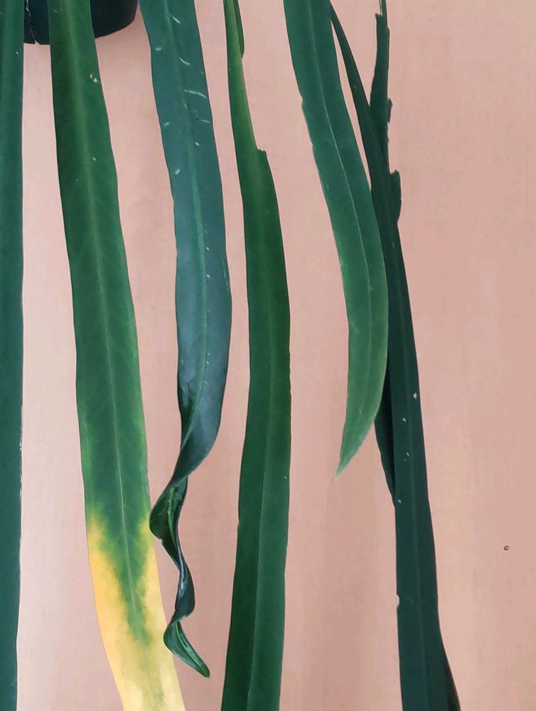 新芽が上手く展開出来ず綺麗に伸びない。今回は螺旋状の葉っぱが成長中😟他の葉っぱもギザギザ😣