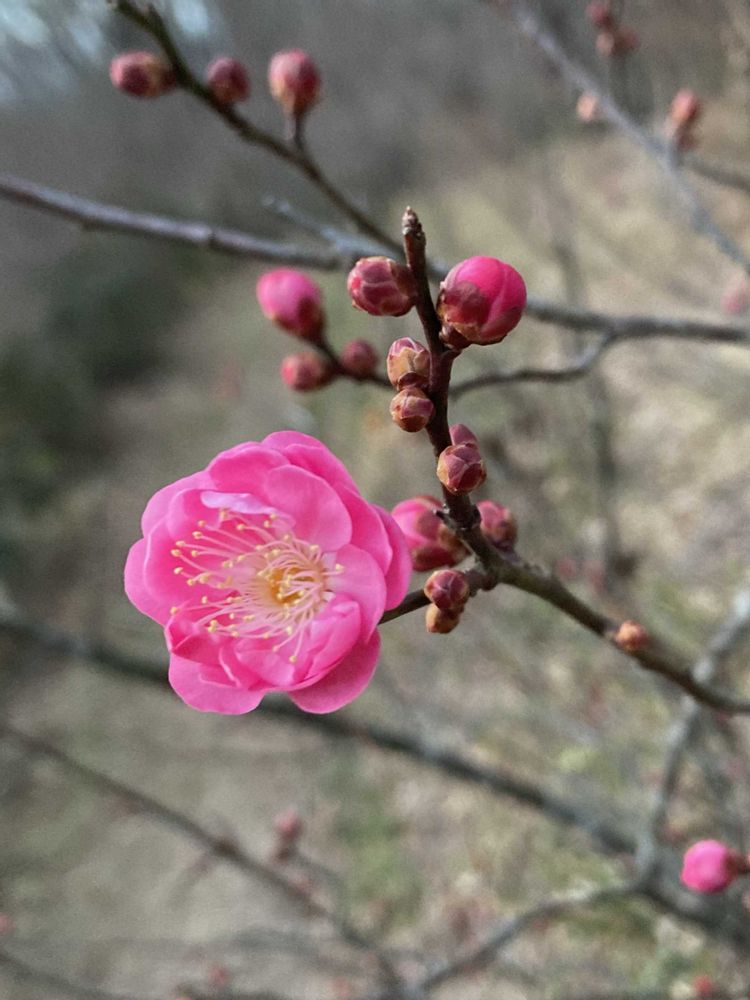 寒いからほんの少し咲いてる紅梅や十月桜に背伸びして撮って来ましたよ🤭