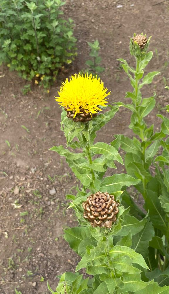 近所の庭にベニバナが咲いていました。咲き始めは黄色いんですね。🤔