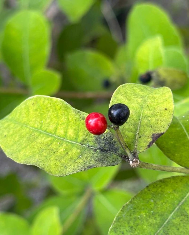 赤い実と黒い実が可愛くなっていました。どちらが熟した方なんでしょう?