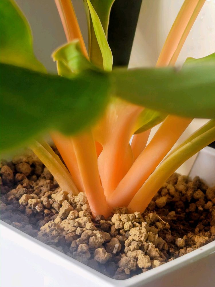 茎の色が優しいオレンジ。観葉植物🪴には珍しい色で、目を引きます✨️。