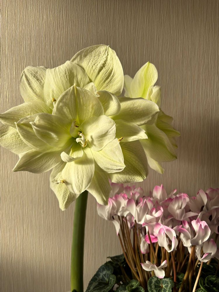 アマリリスとシクラメン、室内で咲いています🌸