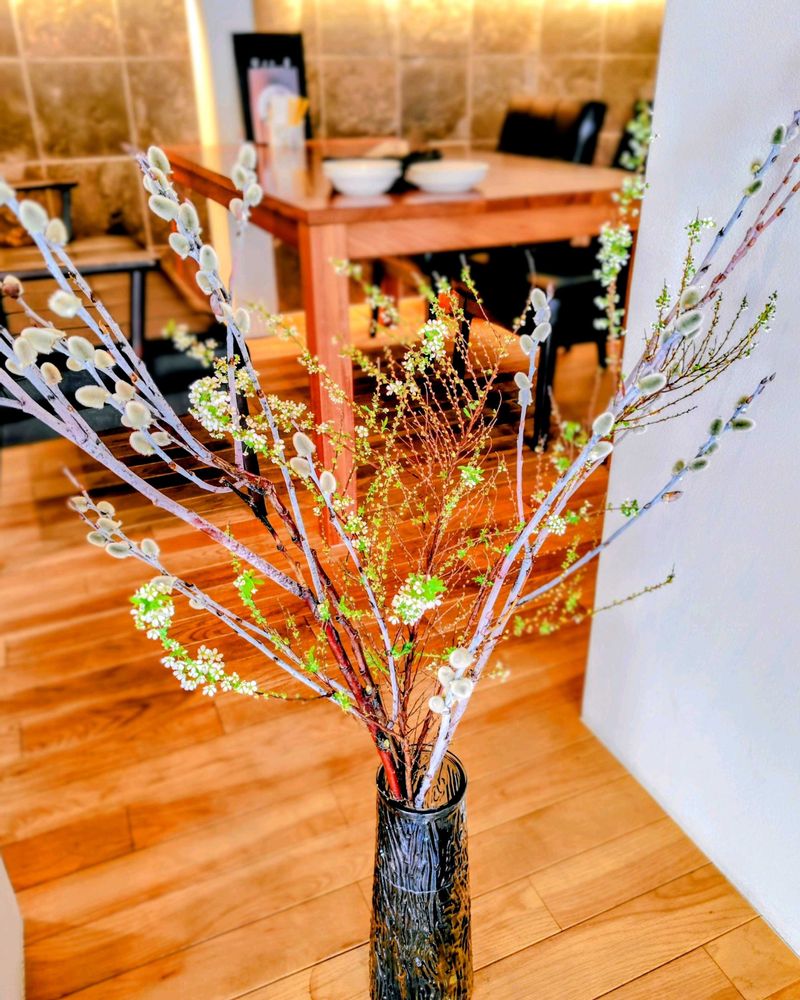2️⃣ ネコヤナギと雪柳だけでこんなに素敵になるんですね✨