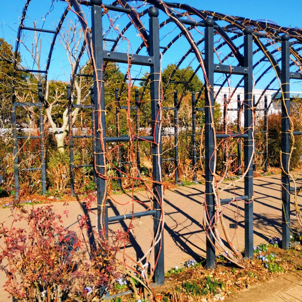 知人が薔薇初心者で冬のツル薔薇の誘引の仕方がよく分からないから教えて欲しいと突然我が家に訪ねて来たので説明するより、どうせなら横浜イングリッシュガーデンに行ってオベリスクからアーチ、トレリスなど色んな誘引の仕方を実際に見た方が説明するより早いと思い25日の早朝に車でドライブがてらに連れてってあげました🚗