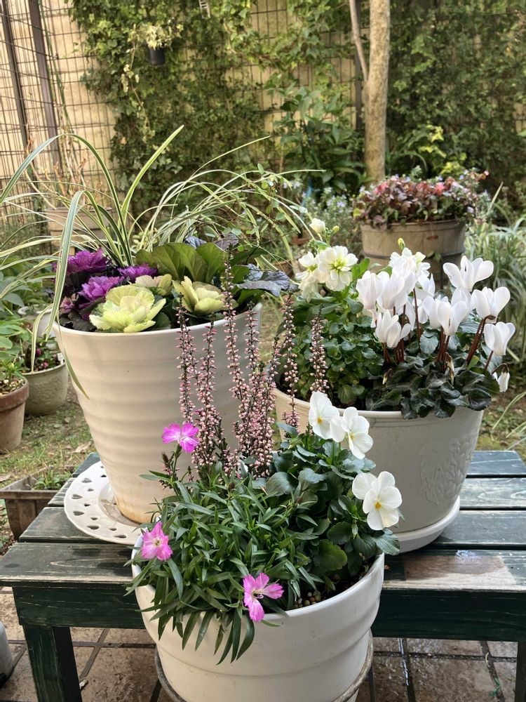 ① 寄せ植え3種