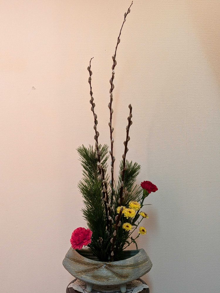 ネコヤナギを生けられて🎶