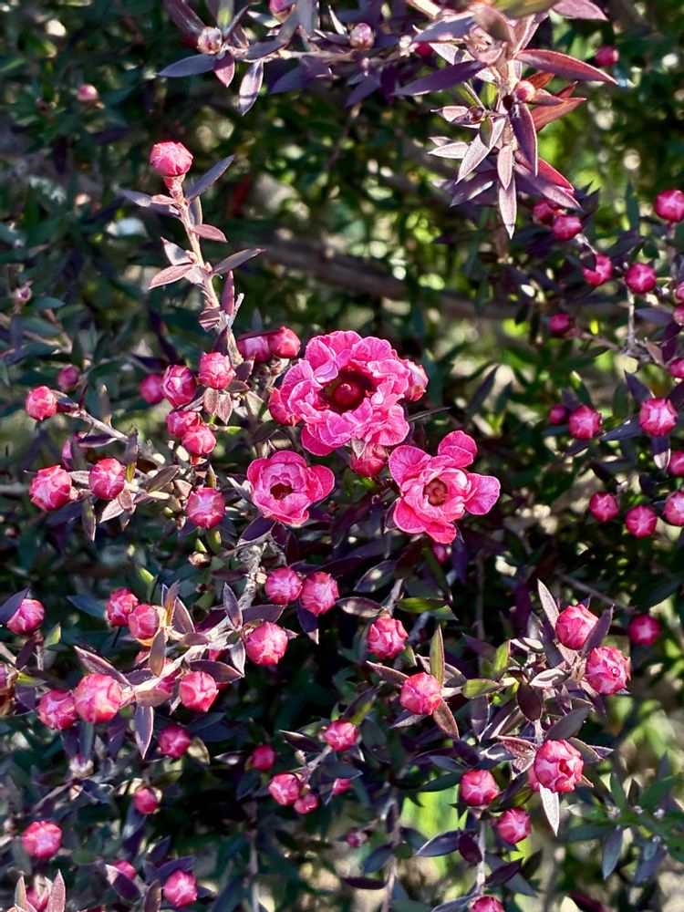 オーストラリアやニュージーランド原産のフトモモ科の常緑低木で、ティーツリーのひとつです。 さまざまな種類があり、お花も一重や八重咲き、花色もピンクや赤、白など種類があり、鮮やかなお花を咲かせます。 マヌカハニーのとれるマヌカもギョリュウバイ(御柳梅)の中のひとつです。