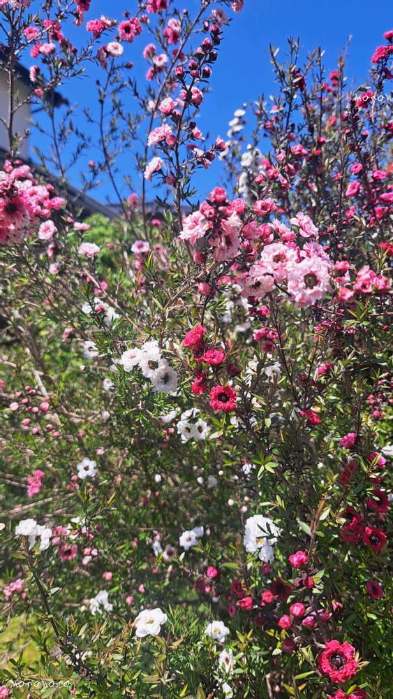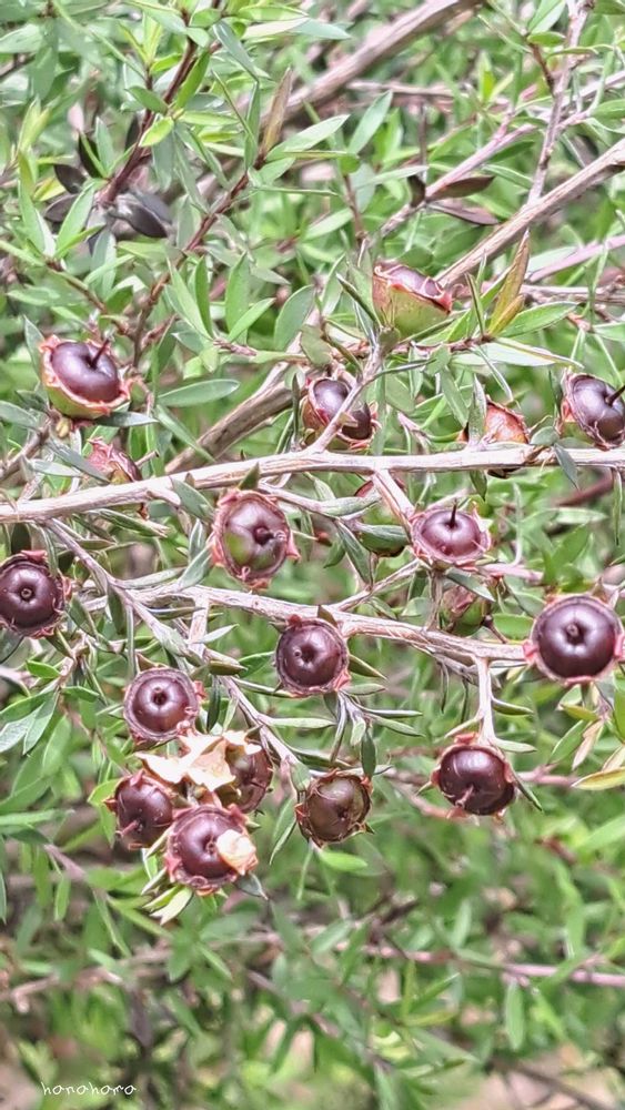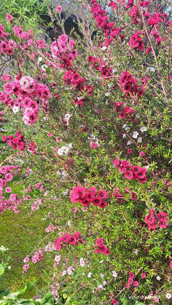 マヌカツリーは白い花が咲く亜種で、ギョリュウバイの中の一種だそうです。