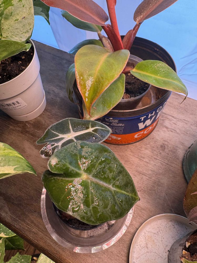 復活したアロカシアちゃん、綺麗な模様も出てるぅ〜🥰一時はもうダメかと思ったけど、こんなに可愛く復活してくれて嬉しい⭐️
