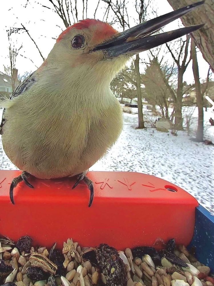 Bird feederにはRed bellied woodpeckerシマセゲラがきました!!😆家をつつくから歓迎してはいませんが、顔は可愛い