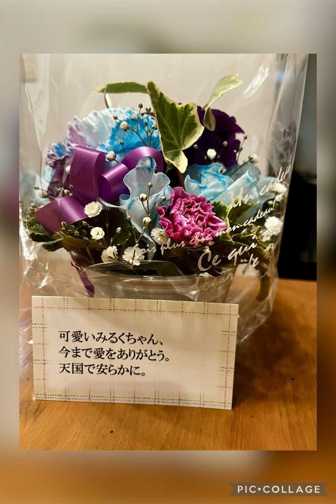 長生きさせてあげられず、申し訳なかったのですが、綺麗なお花と温かいメッセージをいただいて癒されています。