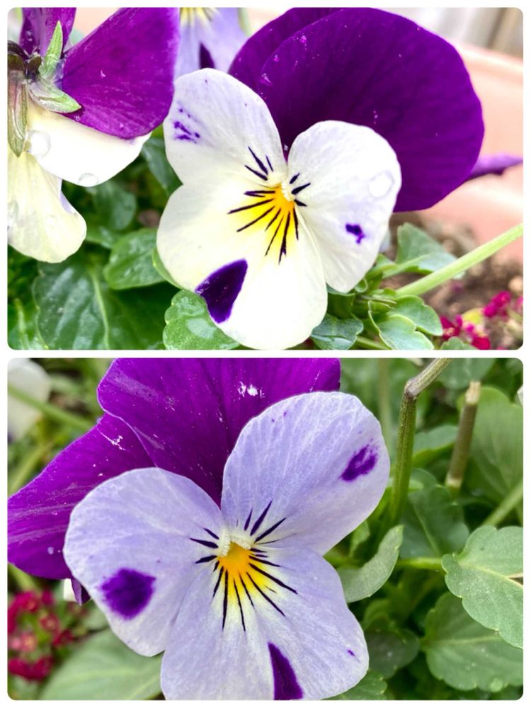 購入した時は白×紫だったけど、最近は薄紫×紫になって咲いてます♪