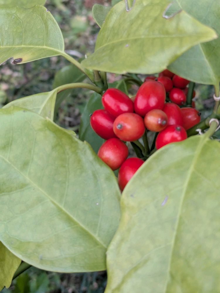 赤く色づく実も出て来ました。