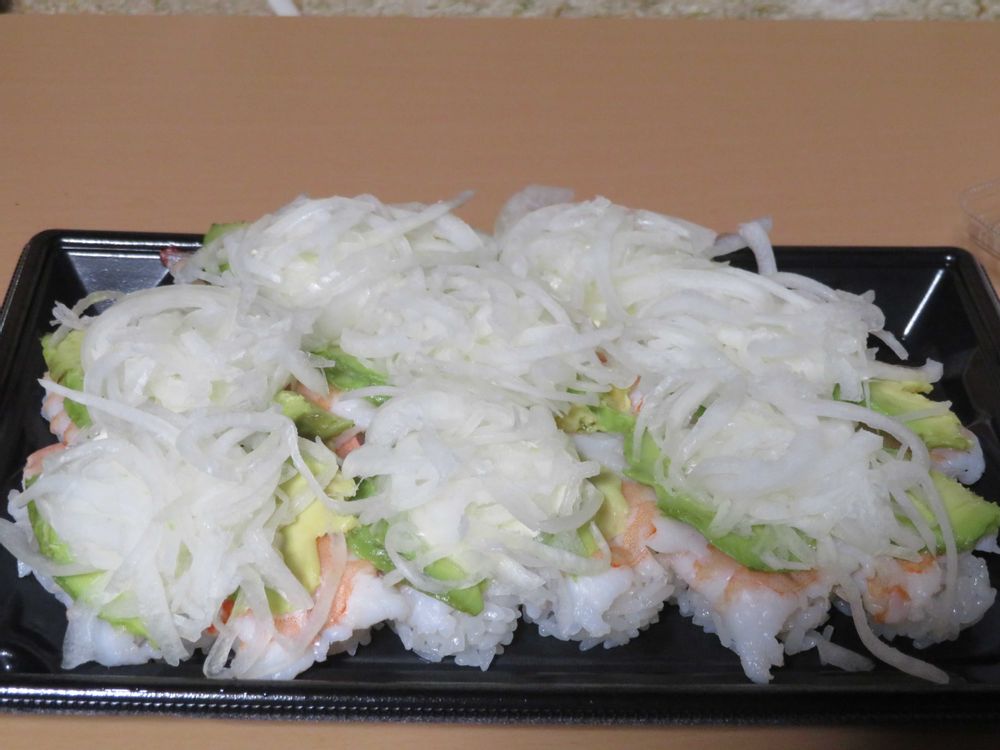 今日はスシローで、えびアボカドを8皿分、持ち帰りしました。